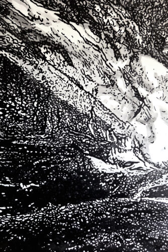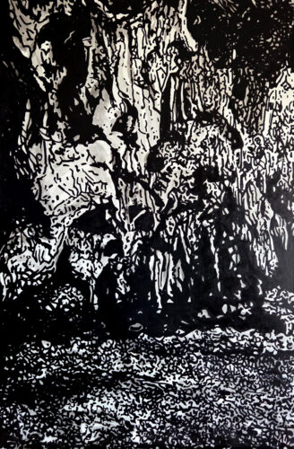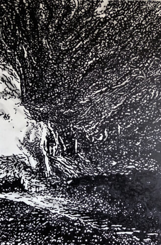 Technique : gesso blanc, encre de chine et Grog Xtra Flow Paint Death Black