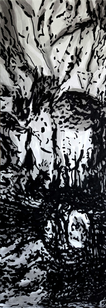Technique : gesso blanc, encre de chine et Grog Xtra Flow Paint Death Black